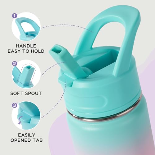 12oz Water Bottle for School, Water Bottles with Straws, Insulated Water Bottles, Stainless Steel Vacuum Insulated Bottle, Leak-Proof, BPA-Free,…
