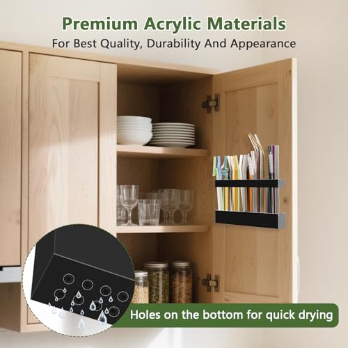 9.5” Large Acrylic Straw Holder for Cabinet Door – Reusable Tumbler Straw Organizer Storage, Small Kitchen Accessories Container, Ultra Sticky…