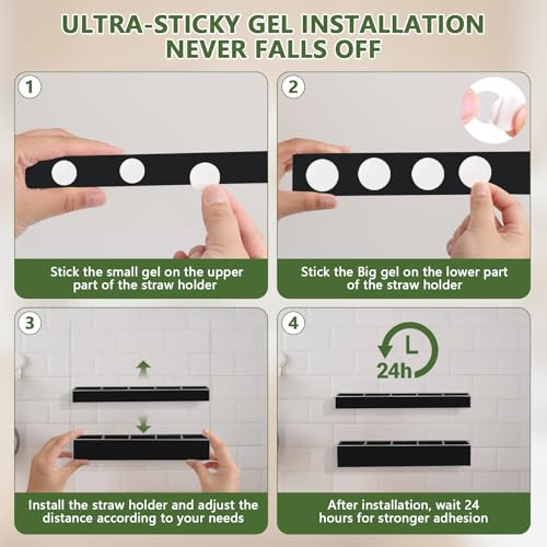 - Ultra-Sticky & Secure Installation – Extra-strong nano gel pads keep the organizer firmly in place for a stable, reliable hold without falling. Tip: For best results, first use your own regular tape to temporarily secure the two acrylic modules inside the cabinet, ensuring the spacing fits your straws and does not affect the door’s opening or closing. Once confirmed, attach with the included nano gel pads.