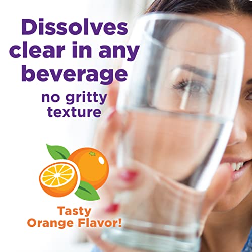 Dissolves instantly in room temperature Water. does not hurt your tummy and usually works. I take it on a regular basis. You pour it in the cap and then pour it in a cup full of water. The key is you have to drink plenty of water, good product, good price. It’\nS easy to use, you can travel with.It is a big, hard plastic container.The texture is like fine. Taste is like orange mild.