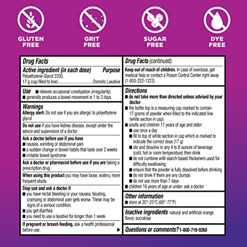 8 reviews for Amazon Basic Care ClearLax Polyethylene Glycol 3350 Powder for Solution, Orange Flavor, Osmotic Laxative, Stool Softener, Relieves Occasional…