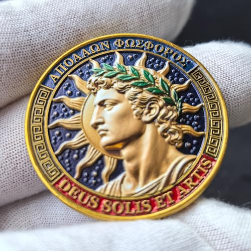 - Meaningful Front Design – Apollo Sun God Token: Features a detailed relief of Apollo, the Greek sun god, crowned with laurel and surrounded by radiant sun rays. The bottom inscription “DEUS SOLIS ET ARTIS” celebrates the spirit of light, wisdom, and artistic inspiration, making it a powerful motivational keepsake for anyone seeking creativity or encouragement