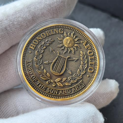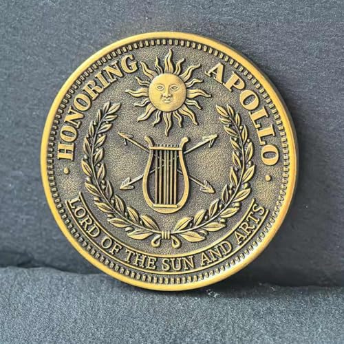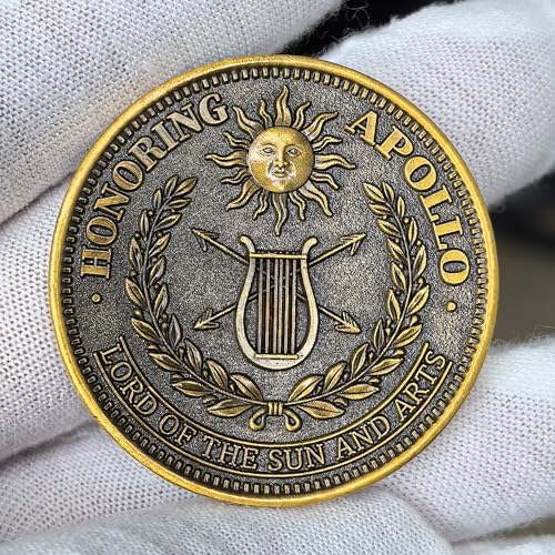 - Symbolic Back Design – Mythology and Arts: Showcases the iconic lyre, arrows, laurel wreath, and sun emblem with the words “Honoring Apollo, Lord of the Sun and Arts.” This Greek mythology coin honors artistic talent, music, and the pursuit of knowledge, perfect as a birthday present or art and music gift for friends and loved ones