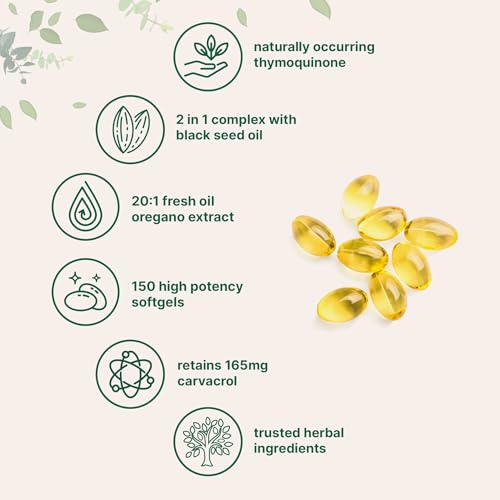 Micro Ingredients Oil of Oregano Softgels, 150 Count | 2 in 1 Formulated with Black Seed Oil | 4X Strength Carvacrol & Thymoquinone | Plant Based,…