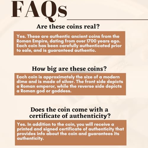 - AUTHENTIC – These are genuine ancient Roman denarius coins, carefully examined and authenticated by a professional numismatist.