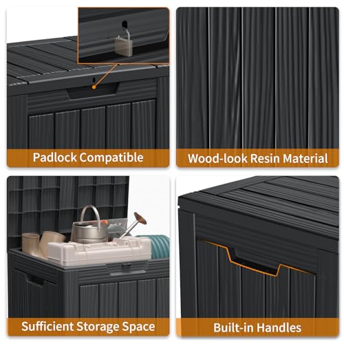 - CONVENIENT DESIGN: Our deck storage box features built-in handles on both sides for easy lifting and mobility. Additionally, you can enhance security by adding a password lock/small lock (not included) to the top cover