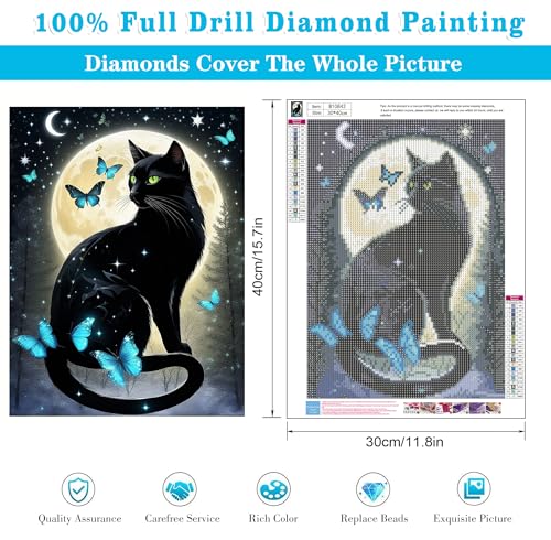 Specification: 5D Black Cat Diamond Art Kits for Adult Beginners Moon Cat Diamond Painting Kits for Adults Butterfly Diamond Painting Full Drill Round Rhinestones…