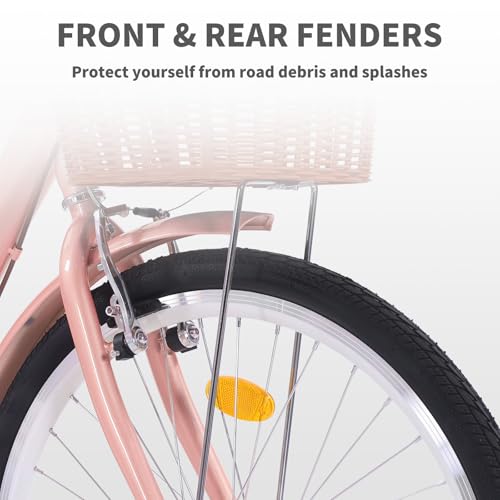 - Urban Mobility: With front and rear V-shaped brakes, our bicycle offers dual braking safety, our bicycles for womens provide superior stopping power, ensuring your safety on busy city streets. Whether you’re commuting to work or exploring your neighborhood, our bike is ready to take you where you need to go