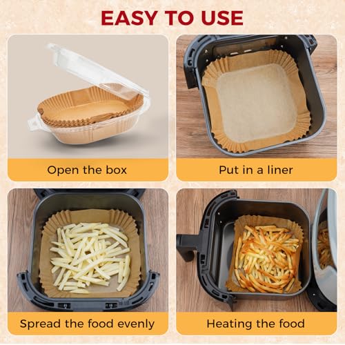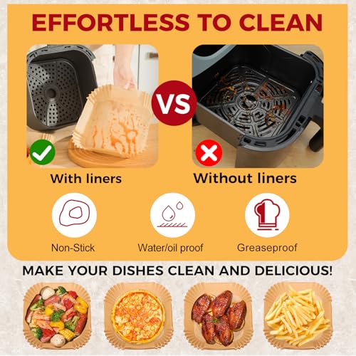 Specification: Air Fryer Liners Disposable – 100Pcs 4.7In Square Parchment Paper for Air Fryer, Non-Stick Oilproof Baking Paper Sheets for 1-3 QT Airfryer Basket