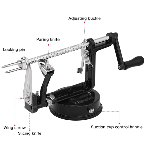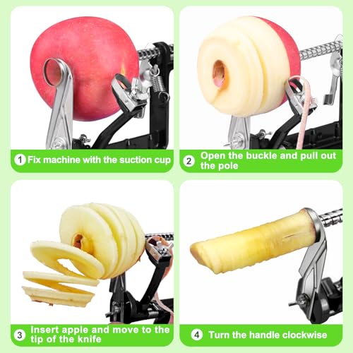 Apple Peeler Corer, Long lasting Chrome Cast Magnesium Alloy Apple Peeler Slicer Corer with Stainless Steel Blades and Powerful Suction Base for…