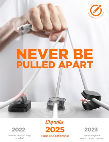 - ✅【Never Be Pulled Apart, Snap Open & Close】Chfeila’s charging cord holder are a game-changer in cable management. Our revolutionary dual spring and clasp design ensures that your cables stay securely in place, no matter how much tugging or pulling they endure. The ingenious snap-open, soft-press mechanism makes adding or removing cables a breeze, providing a seamless user experience. Say goodbye to tangled cords and accidental disconnections that disrupt your workflow or relaxation time.