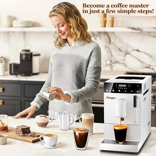 Coffee Maker Automatic Espresso Machines: Coffee Machine Built-In Grinder for Home Kitchen Office – White Expresso Maker with Milk Frother for…
