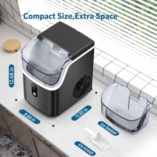 - 【Low Noise】The compressor of the upgraded Nugget Ice Maker reduces the sound, only producing 43 DB, so you don’t have to be bothered by the noisy sound when the machine works.