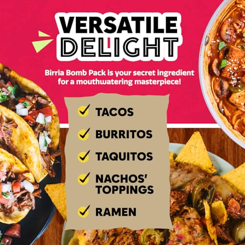 - For Every Skill Level: Designed for culinary beginners and experts alike, the Birria Bomb Pack is easy to use and guarantees restaurant-quality flavor at home. Impress your guests or family with a delicious meal they’ll rave about.