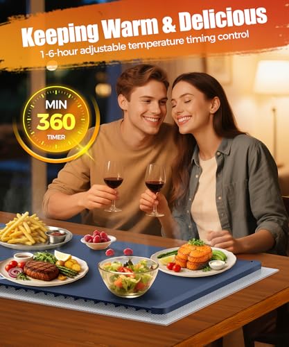 Specification: Food Warming Mat with Heat-Resistant Pad, 26X15 Inch, 6 Temperature & 6 Timer Settings, Child Lock Safety,Food Warmer Chafing Dishes for…