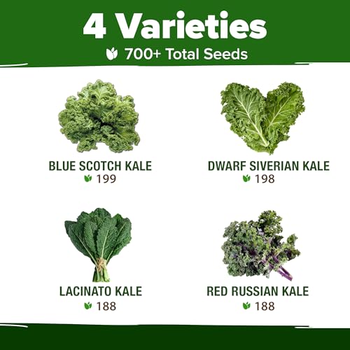 - FOUR STUNNING, NUTRITIOUS, AND DELICIOUS VARIETIES OF KALE – 700+ kale seeds of varieties including Lacinato kale, Blue Scotch kale, Dwarf Siberian kale, and Red Russian kale. All tender and delicious, especially after a frost.