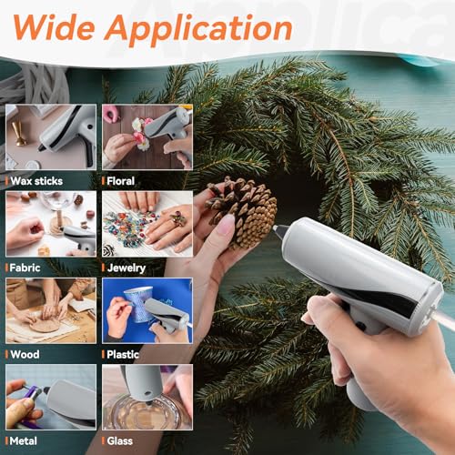 - 【Useful and Multipurpose】: This hot glue gun with glue sticks is an ideal tool for various DIY, such as crafts & arts, home repair, making Christmas decoration, gifts. It can work well with plastic, glass, paper, cotton, fabric and other materials. Also great for kids making crafts!