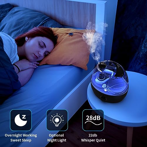 Humidifiers for Bedroom and Large Room, 2.2L Cool Mist Humidifier for Baby, 30 Hours with Whisper-Quiet Operation, Adjustable 360° Rotation Nozzle,…