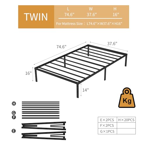 13 reviews for Metal Bed Frame,Twin Size Bed Frame with Storage Space,Heavy Duty Sturdy Mattress Foundation,Easy Assembly,No Box Spring Needed, Black,16 Inch,Twin