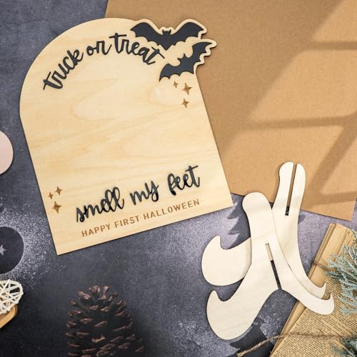 Specification: My First Halloween, Halloween Baby Footprint Wooden Sign, Trick or Treat Smell My Feet Keepsake, Newborn Fall Decoration, DIY Painting Craft for…