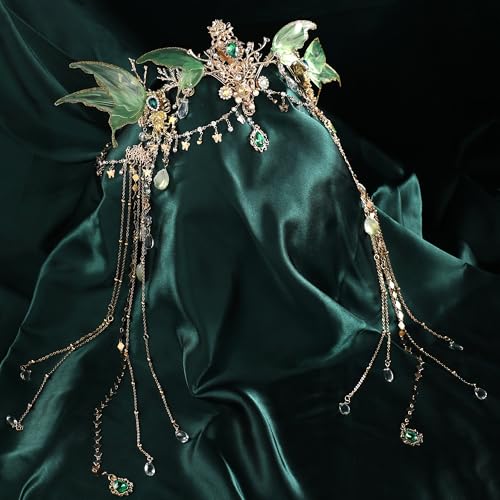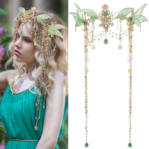 Renfaire Butterfly Fairy Elf Crown – Elf Headpiece with Green Butterfly Wings Elven Tiara with Tassel Elven Headband Wedding Renaissance Cosplay…