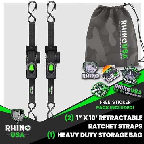 Specification: Rhino USA Retractable Ratchet Straps (2-Pack) – 1 Inch x 10 Feet (1,209lb Break Strength) – Heavy Duty Auto Self Retracting Tie Down Straps for…