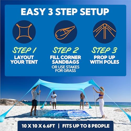 - Easy Setup: Our SUN NINJA cool cabana beach tents set up easily and come with stability poles and anchors that let you use them over sandy beaches, thick grassy areas, or even in rocky camping spots.