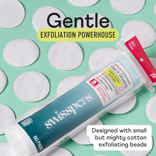Swisspers Premium Exfoliating Cotton Rounds – 80 Count (Pack of 3) – 100% Pure Cotton, Dual-Sided Surface Pads for Gentle Exfoliation, Optimal…