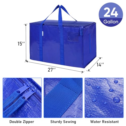 These storage bags surprised me in a good way; zippers run smooth, handles are wide and comfy, I loaded bedding coats and a stack of books and nothing ripped, the open top made packing quick, and they stack neat in the car and at home without fuss. They fold flat so I toss them in a closet, the little tag pocket helps me mark whats inside, and the bright blue is easy to spot; not fancy, just tough and useful bags that saved me boxes and time, and I am glad I bought them.